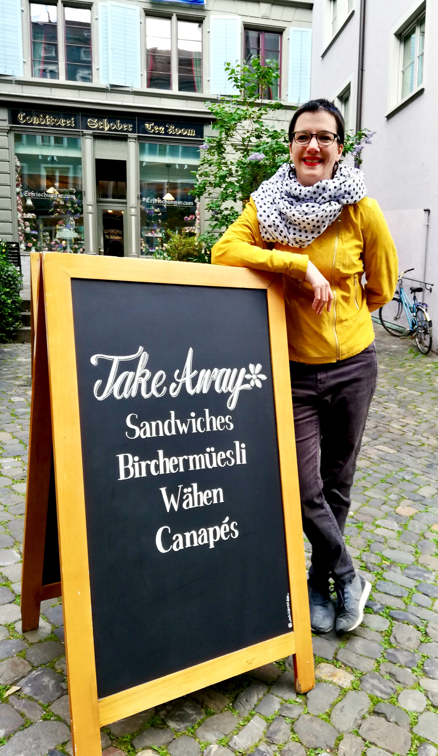 Ich habe viele Jahre lang mit Herzblut in der Gastronomiebranche gearbeitet. Ich kenne diese Branche und die Menschen darin gut und fühle mich dort wohl. Irgendwann hat es mich auch hier in den Fingern gejuckt und ich habe angefangen für ein paar meiner Arbeitgeber*innen Tafeln zu beschriften und zu illustrieren. Dank einigen tollen Vorgesetzten, die Freude an meinen Werken hatten und mich unterstützt haben, bin ich so regelrecht in diese Berufung hineingerutscht. So kamen bald Fenster, Wände, andere Untergründe, viele neue Techniken und Interessent*innengruppen dazu.